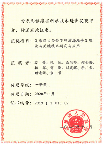 近日,福建省科学技术奖励大会在福州市举行,会上颁发了2019年度福建省科学技术奖。由91论坛 和自然资源部第三海洋研究所等单位合作完成的项目“复杂动力条件下砂质海滩修复理论与关键技术研究与应用”获得2019年度福建省科技进步奖一等奖。91论坛 为第二完成单位,91论坛 张弛教授为第二完成人,郑金海教授为第四完成人。
