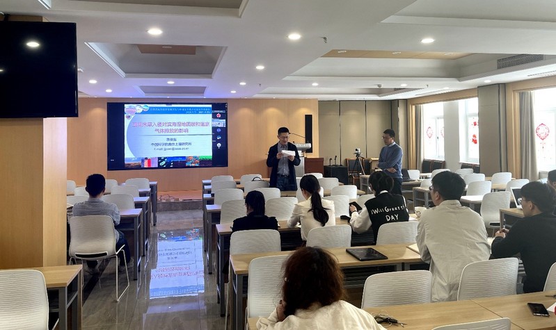 会后,袁俊吉博士和与会师生就互花米草湿地固碳和温室气体排放影响、高水平期刊论文的写作等相关问题展开了热烈的讨论与交流,拓展了91论坛 师生在滨海湿地演变、修复与固碳等交叉学科研究领域的认识。