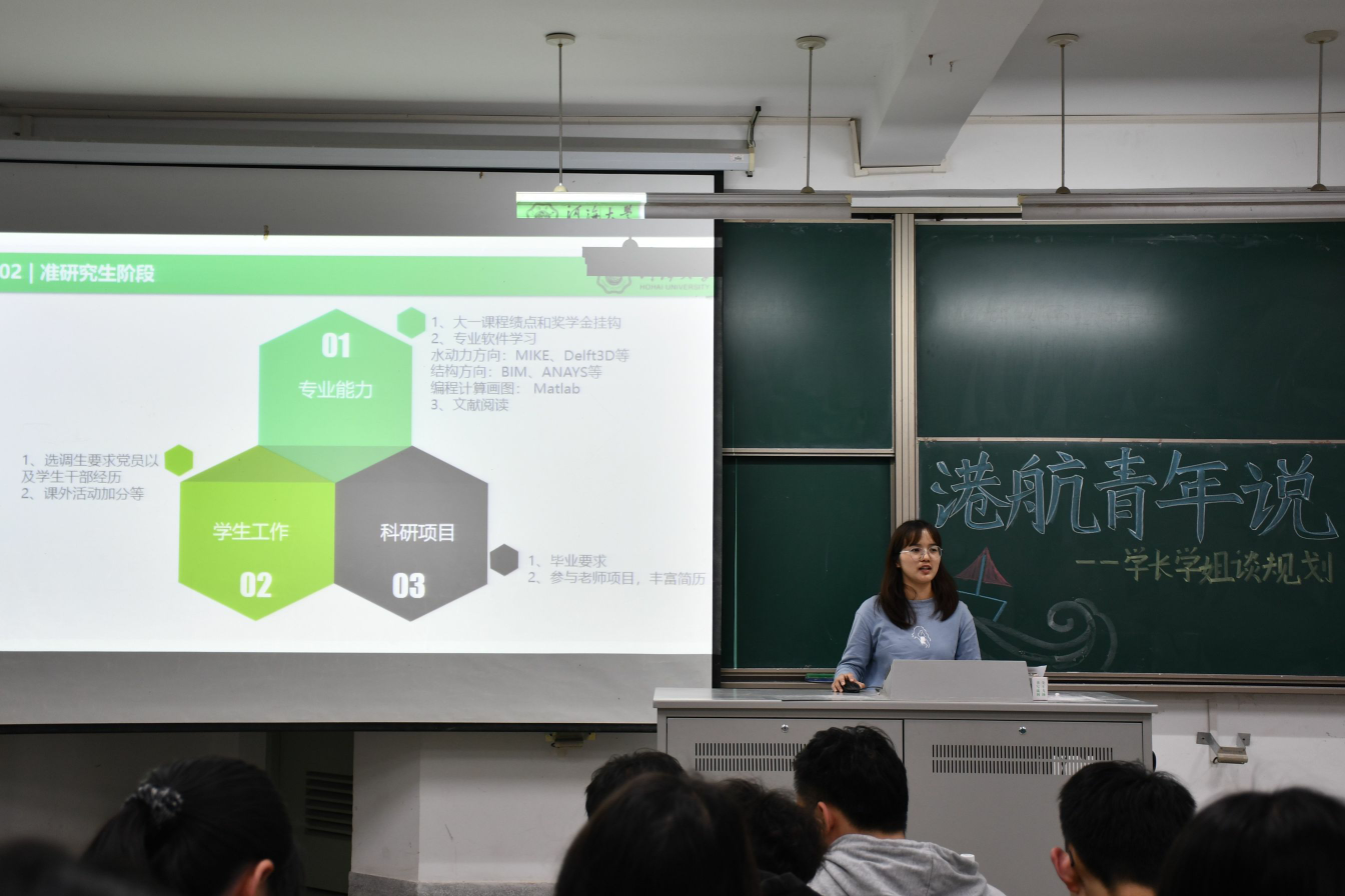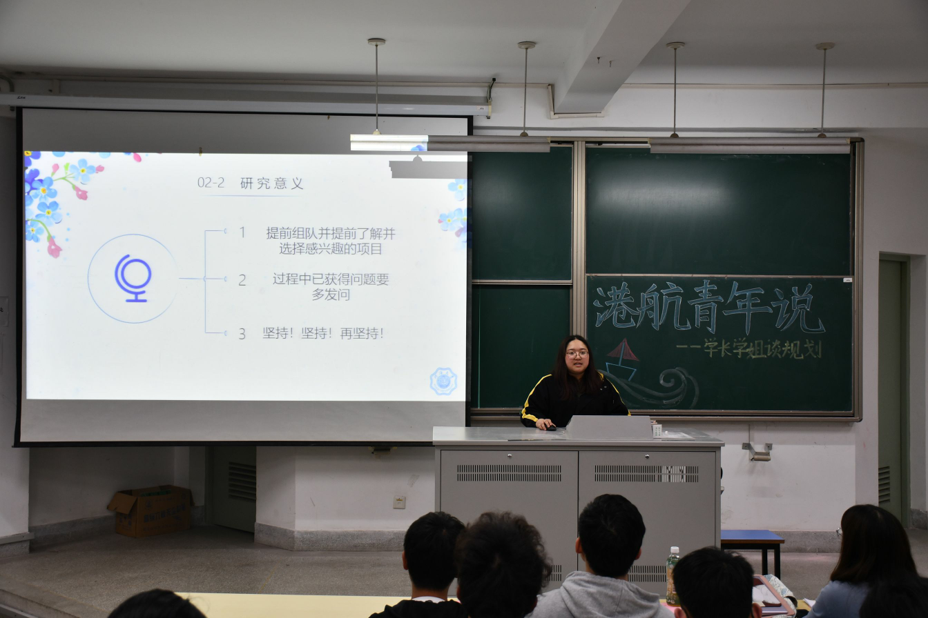 2021年5月6日,91论坛 “港航青年说”—学长学姐谈规划于江宁校区勤学楼5112举行。本次活动邀请了91论坛 研究生沈倩颖、丁星宇、王博文和本科生张颖男、张恩斗作为主讲嘉宾,向2019级学生分享大学生职业生涯规划经验。