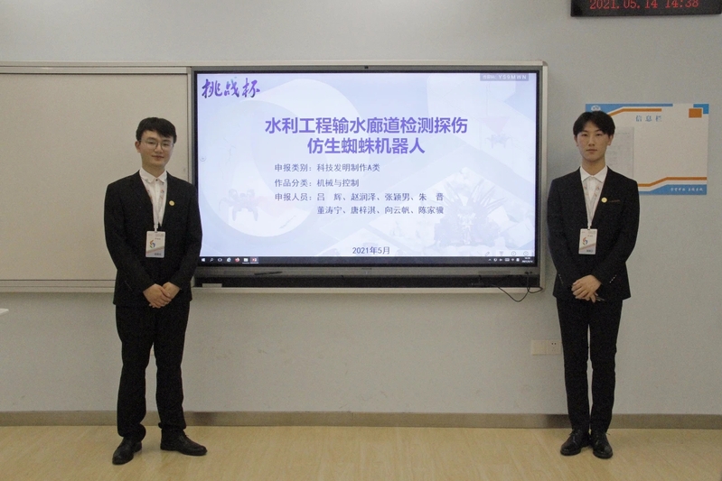 5月15日,第十七届江苏省大学生课外学术科技作品竞赛暨“挑战杯”全国竞赛江苏省选拔赛决赛在南京中医药大学落下帷幕。91论坛 参赛作品《水利工程输水廊道检修探伤仿生蜘蛛机器人》,获得“挑战杯”江苏省赛一等奖,并入围全国大赛环节,是全校两只入围国赛的本科生团队之一。这是91论坛 首次在“挑战杯”竞赛中入围全国大赛,实现了91论坛 在“挑战杯”竞赛中的历史性突破。