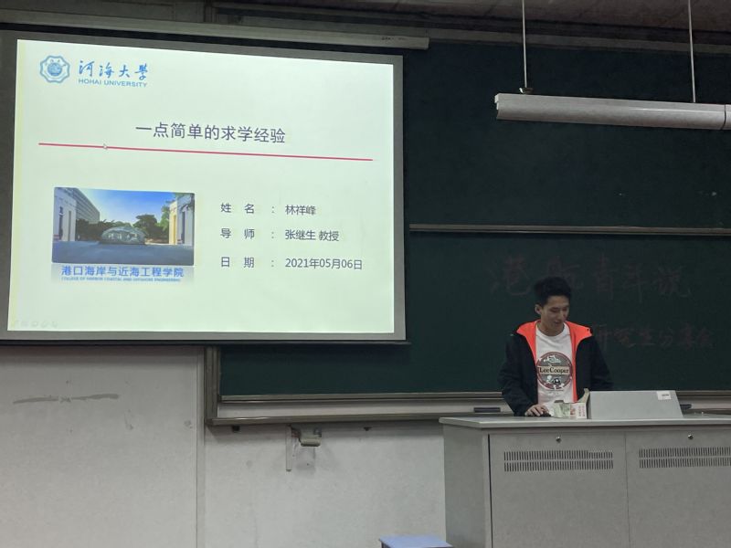 5月6日下午16时,91论坛 2018级本科生在水利馆201教室开展“港航青年说——优秀研究生经验分享会”,邀请到2016级直博生林祥峰,2018级硕士冯辉、罗小雅,2019级硕士李智成进行分享。