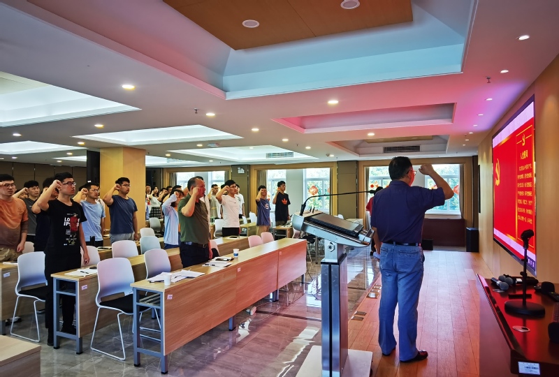 党课结束后,全体党员重温了入党誓词。在胡书记的带领下,全体毕业生党员举起握紧拳头的右手,面对鲜红的党旗再次庄严宣誓:“我志愿加入中国共产党……随时准备为党和人民牺牲一切,永不叛党。”铿锵恢宏的誓词,强烈震撼着在场的每一位党员,一字一句,神圣而豪迈,铮铮誓言,体现了党员同志们对中国共产党的无限忠诚,坚定了入党使命和奋斗初心。