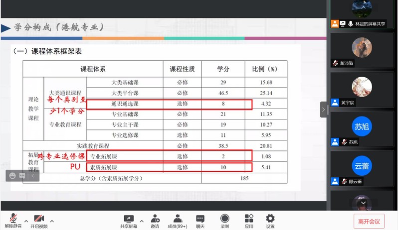 讲座伊始,林晨老师通过数据、图表等方式带领同学们归纳总结了91论坛 2020级在大一学年课堂学习、第二课堂、社区管理等方面的表现。此外,林晨老师具体讲解了港航专业、海资专业2020级培养方案,梳理解答了近期同学们集中反馈的关于各类选修课要求的疑问。