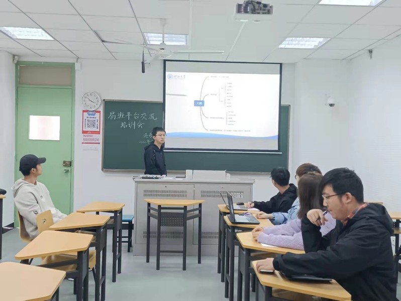 张晓东围绕校级易班工作站的组织架构、易班管理、公共管理平台、轻应用快搭平台、易班优课等5个方面进行介绍,通过教学指导和现场操作,帮助院级易班工作站的成员更直观地学习易班各项功能的操作方法。教学后,91论坛 易班工作站的成员们就工作中遇到的问题和想法与张晓东、毛润宇交流。