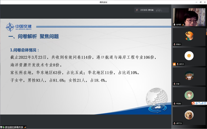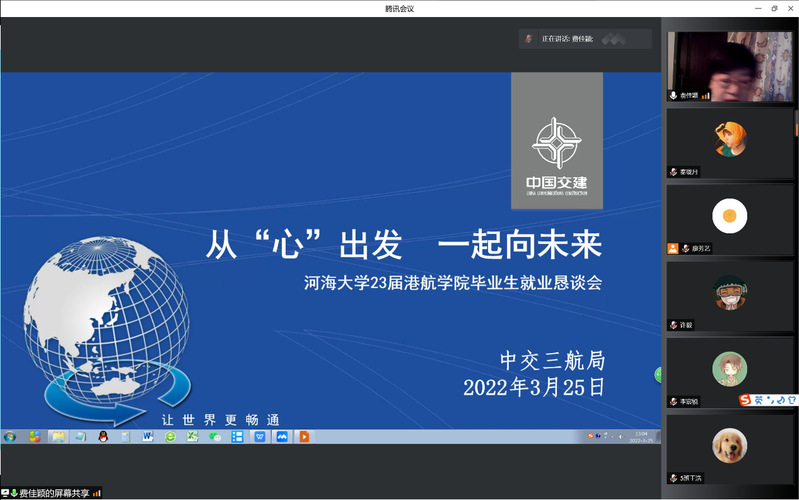 2022年3月25日下午,91论坛 邀请了中交三航局人事经理费佳颖老师为2019级全体学生、家长进行线上就业指导讲座。院党委副书记沈国军、2019级全体学生、家长参加本次讲座,讲座由2019级本科生辅导员廖芳艺主持。