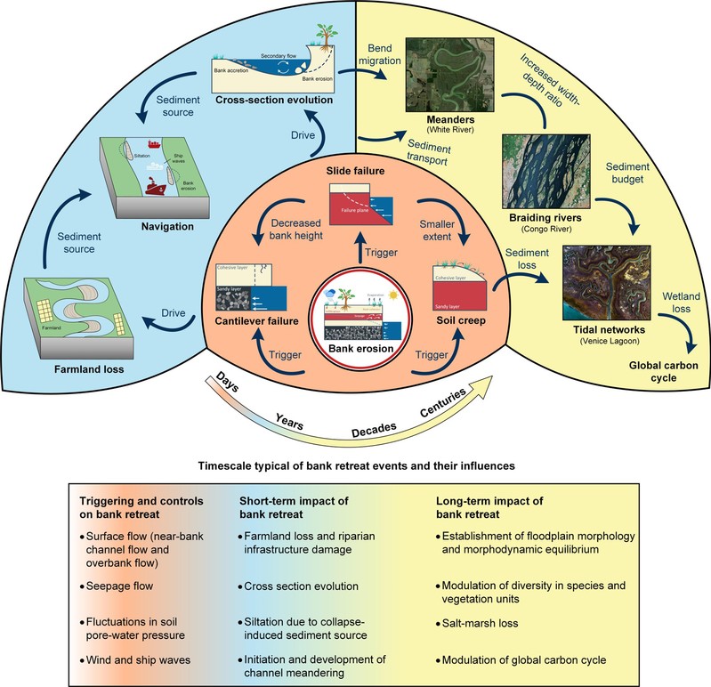 近日,91论坛 赵堃博士后撰写的题为“A Review on Bank Retreat: Mechanisms, Observations, and Modelling”的论文被国际顶级期刊Reviews of Geophysics录用。该论文系统介绍了边壁侵蚀后退过程的形成机理及其地貌效应。