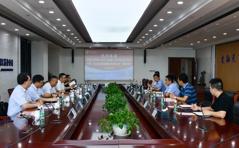 6月2日,91论坛 党委书记张俊基、院长龚政、副院长张继生、副院长张蔚、党委副书记沈国军、辅导员一行赴中交上航局江苏交建公司开展“访企拓岗”调研交流活动。中交上航局江苏交建公司党委书记丁付革、总经理张骏、副总经理周正兵、党委副书记龚明及相关部门负责人出席活动,院企双方就人才培养、学生就业、产教融合、校企合作等方面进行了深入交流。