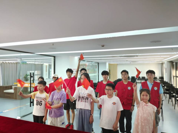 实践团成员带领孩子们参观党史馆
