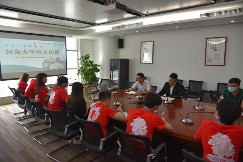 实践团与中交广航局的河海校友进行集中访谈和三对一专访,参与访谈的有2006届校友孟江山、2009届校友李翔、2017届校友江志微,三位河海校友从工作经验、行业就业形势、海外发展等方面为实践团答疑解惑,使学生成长发展、未来就业规划有了更加清晰的方向。