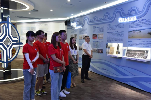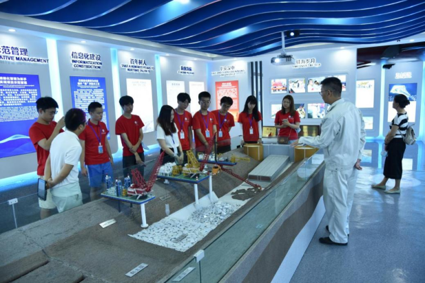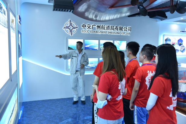 座谈交流后,实践团参观了广航展馆,并从“广航志、广航业、广航誉、广航博”四个方面全面系统地了解了中交广航局的发展历程和重大成就,感受到了广航悠久的历史底蕴和新时代焕发出新的勃勃生机。