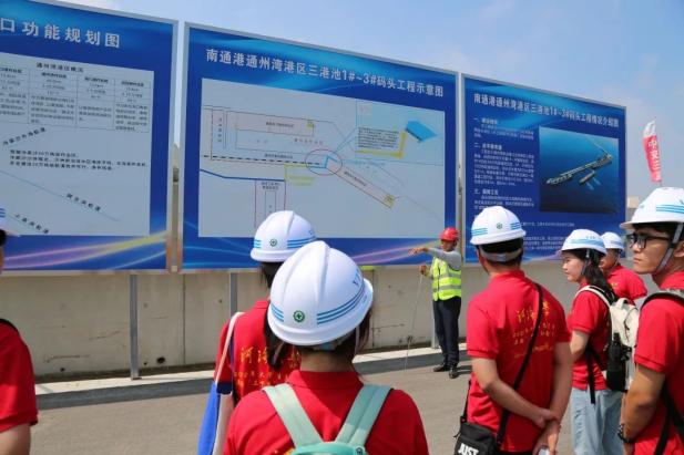 港口是中国经济的晴雨表,也是对外开放的最前沿。实践团前往中交三航局通州湾项目学习调研。“一带一路”倡议的实施、“陆海内外联动,东西双向互济”开放格局的背景下,中交三航局三公司向着港口集约化规模化专业化、航运现代化信息化智能化方向发展,为打造智能港口而不断努力。在通州湾1号-3号码头项目现场,实地参观考察与详细的讲解让队员们了解到项目施工生产的具体景象以及中交三航局对码头工程的建设理念,对整个建设过程、施工内容、工程技术有了深入的理解。随后在项目部,实践团队就专业学习、就业方向等方面与项目部负责人员和河海毕业生进行深入交流。