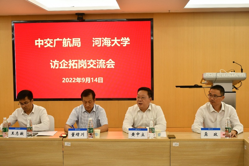 近日,中交广航局副总经理黄中立、人力资源部总经理王志敏、国内市场开发部副总经理张惟河、设研院副总经理刘锦秀、安徽公司副总经理杨培锋、人力资源部人才开发经理杨舒捷、福建公司人力资源部杨志娟一行来91论坛 进行访问交流。91论坛 副校长董增川、91论坛 院长龚政、相关91论坛 党委副书记及辅导员参会。