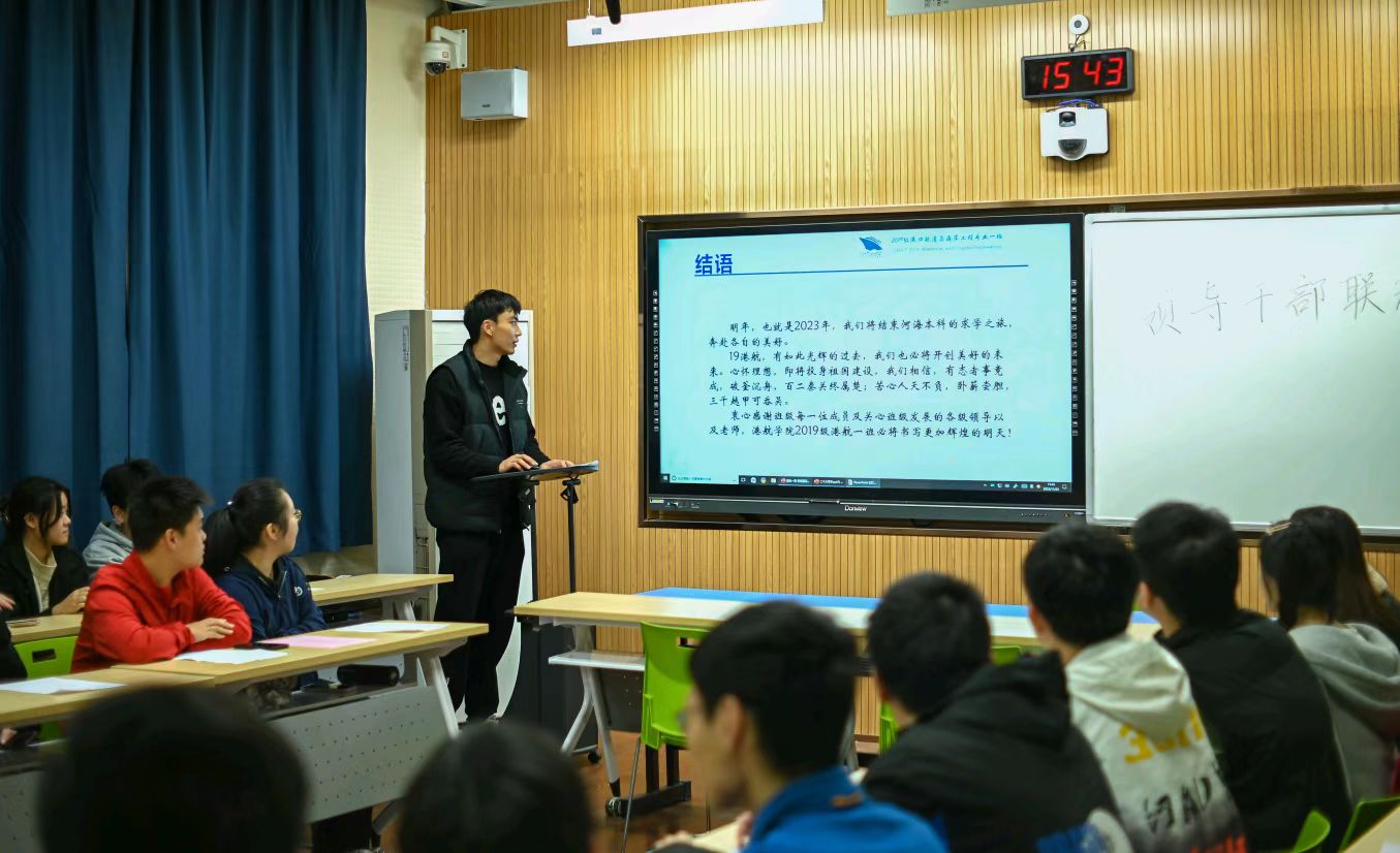 11月23日下午,2019级港航1班召开“学习贯彻二十大,毕业就业创青春”主题班会。校党委常委、党委统战部部长、党委办公室主任朱宏亮、91论坛 党委书记张俊基、班导师及辅导员出席活动。班会由班长季一鸣主持。
