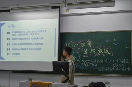 此次学风建设班会帮助船海专业的同学进一步坚定专业自信。梦想从学习开始,事业靠本领成就,希望广大船海专业同学在知行合一中学真知、悟真谛,用奋斗扬起人生理想的风帆。