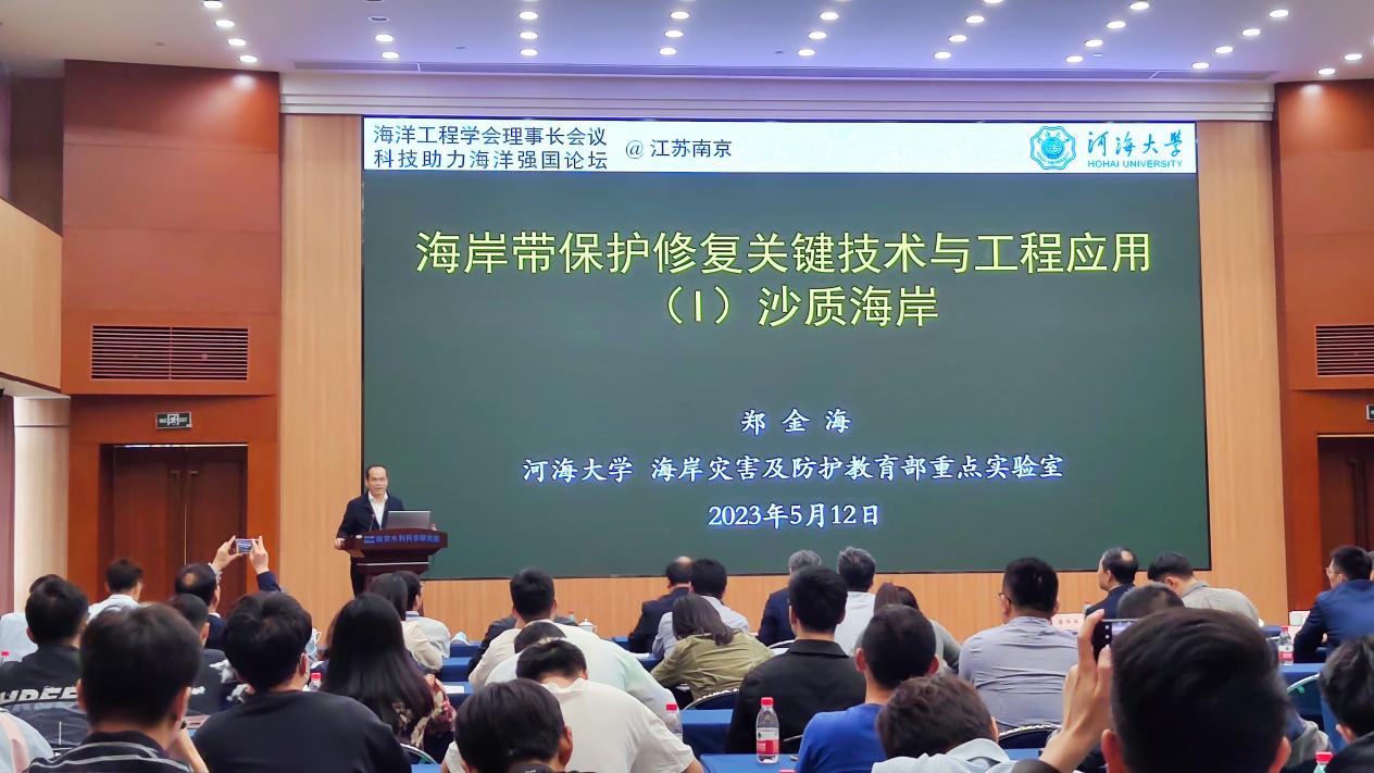 2023年5月12日下午,91论坛 郑金海教授应邀参加了在南京水利科学研究院举办的大国重器-科技助力海洋强国论坛,作了题为“海岸带保护修复关键技术与工程应用(1)沙质海岸”的特邀报告。报告会由中国工程院胡亚安院士主持。