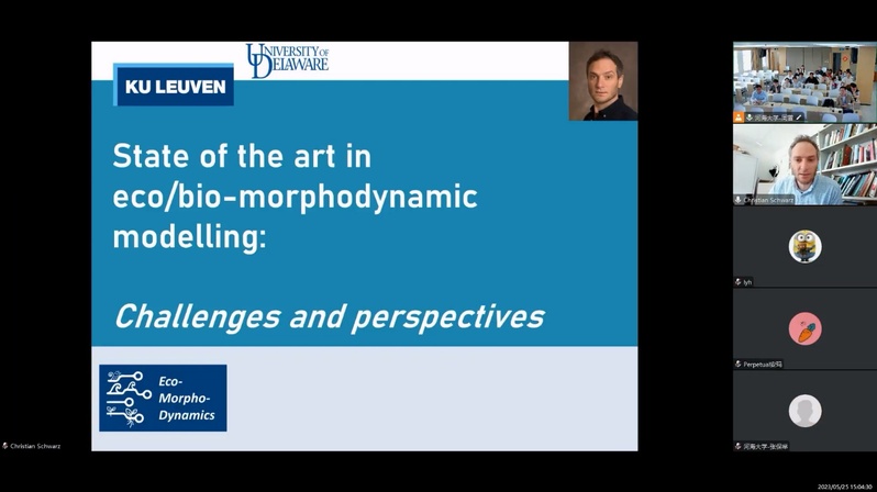 2023年5月25日下午,新西兰怀卡托大学Karin Bryan 教授和比利时鲁汶大学Christian Schwarz博士应江苏省海岸海洋资源开发与环境安全重点实验室邀请,分别作了题为“Tidal circulation in mangroves wetlands: the role of channels and vegetation”、“Extracting water quality parameters from shallow estuaries using satellite” 和“State of the art in eco/bio-morphodynamic modelling, challenges and perspectives” 的学术报告。学术报告会由周曾教授主持。