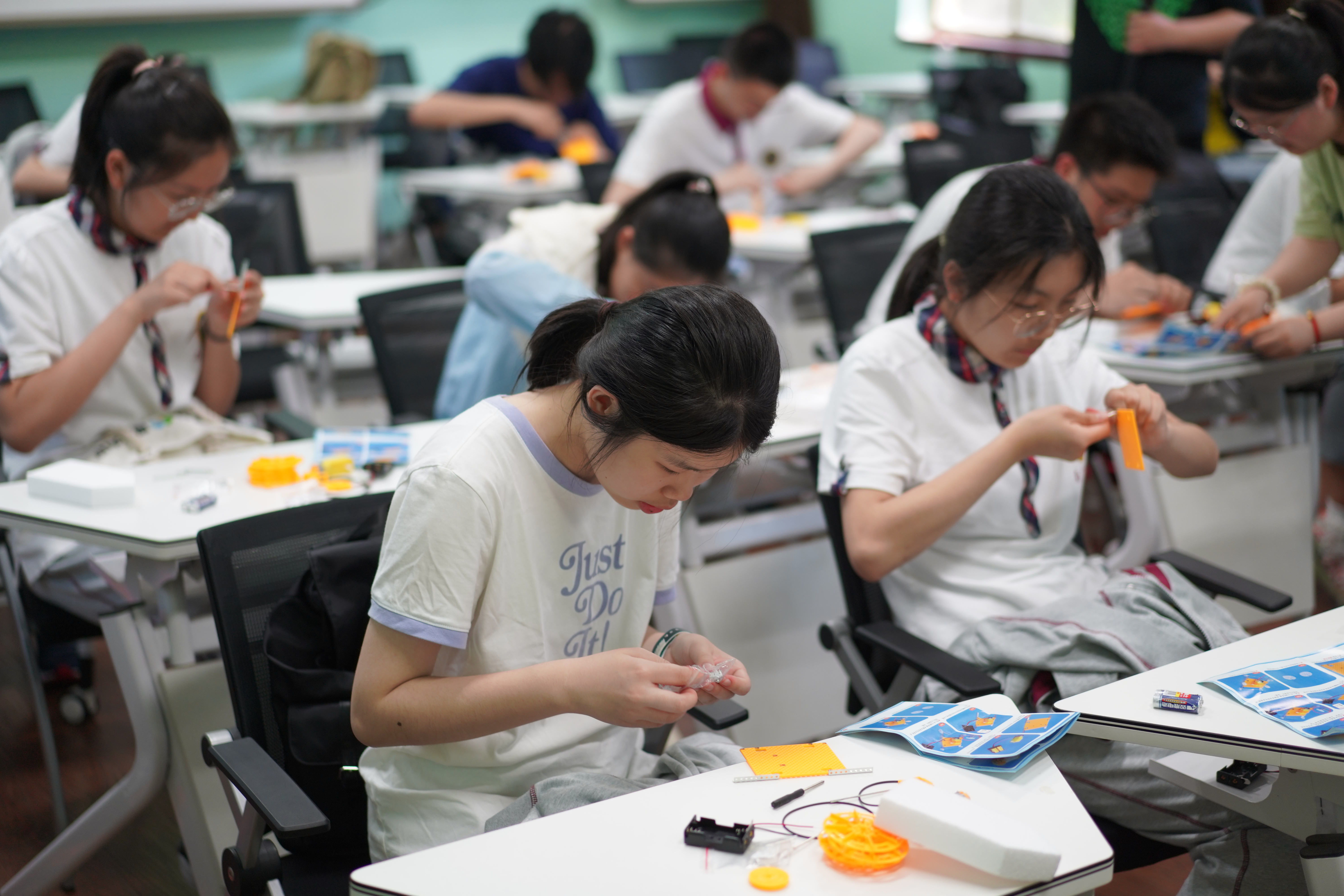 在教室里,南京一中高中生与91论坛 学生交流大学生活,一起完成了海上装备模型拼装活动,帮助同学们在活动中感受实践探索的魅力,丰富了学生的水利常识,提升了其实践动手能力。