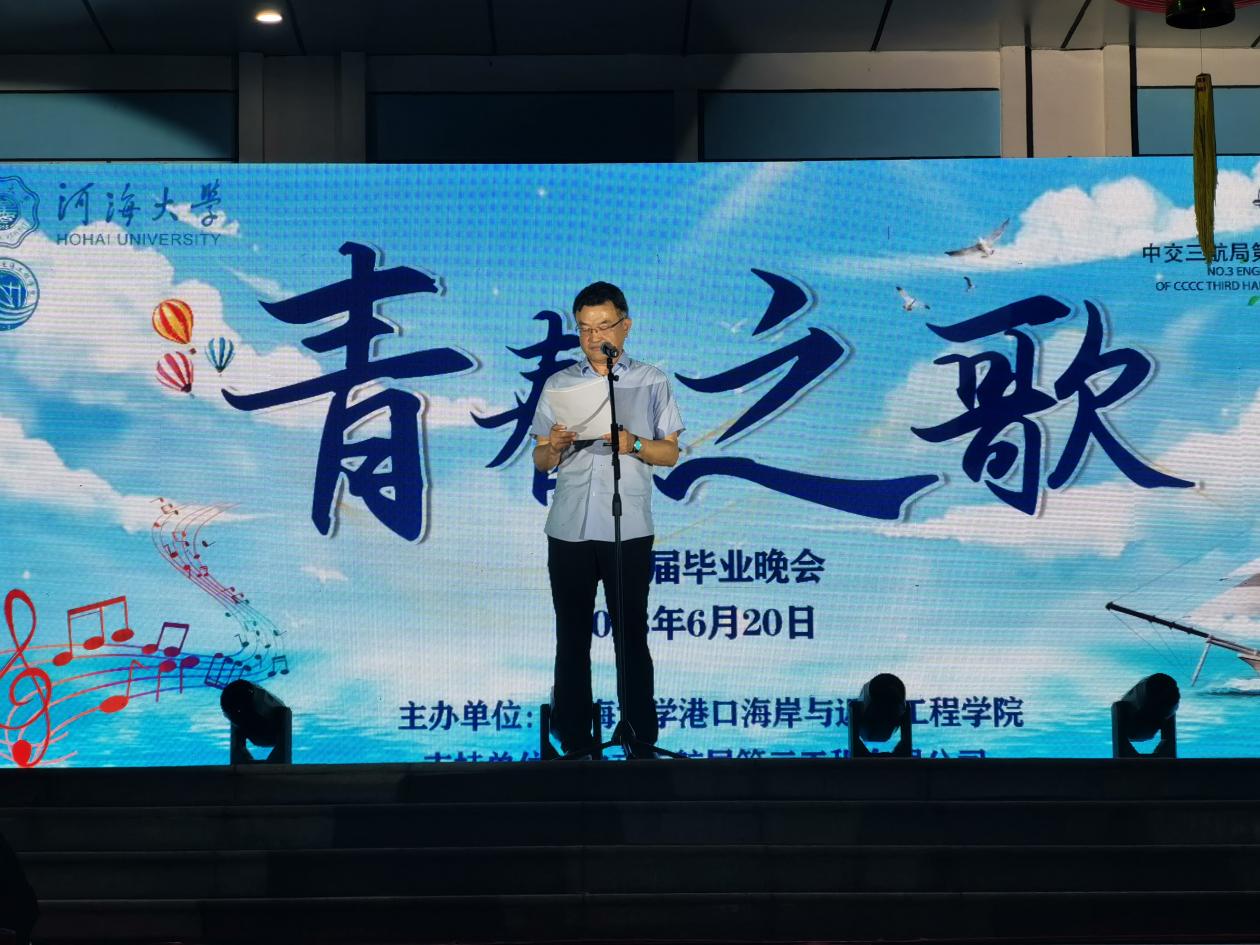 晚会开始由张俊基书记致辞,张书记表达了对全体毕业生顺利完成学业表示祝贺,对三航局对本次活动的支持表示感谢。张书记针对“什么样的青春才是自己想要的?”这一问题,他认为最美的青春,是奋斗正当时;最美的青春,是勇于探索;最美的青春,是全力以赴。最后,张书记祝福毕业生开启人生的崭新旅途,在新的征程中努力探索,预祝晚会演出圆满成功。