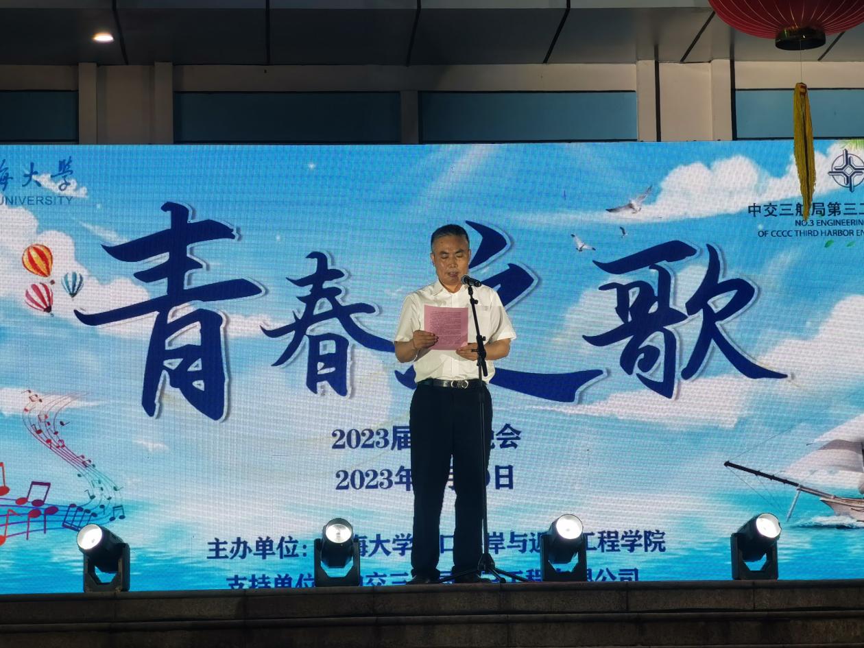 6月20日,91论坛 在严恺馆楼下举办“青春之歌”2023届毕业晚会。91论坛 党委书记张俊基,中交三航局第三工程有限公司副总经理张雷,中交投资智慧新城项目公司总经理范公俊,副院长张继生、张蔚、陈永平,党委副书记沈国军,班导师、辅导员、家长代表及全体毕业生参加活动。