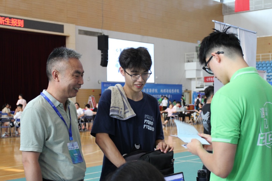 校党委书记唐洪武、校党委副书记郭继超、副校长郑金海,91论坛 院长龚政、党委书记张俊基、副院长张蔚、党委副书记沈国军莅临现场指导迎新工作,领导们热情欢迎新生及家长,关心询问了新生报到情况,并合影留念。