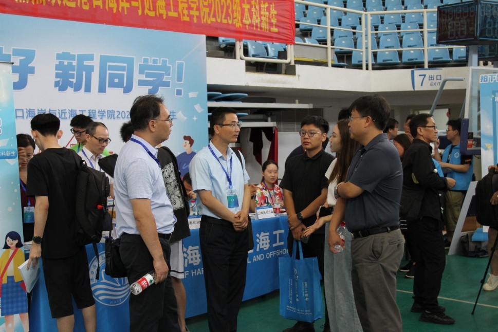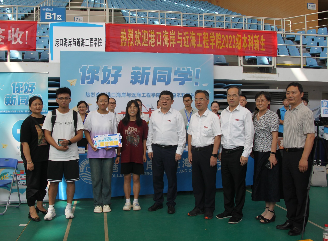 校党委书记唐洪武、校党委副书记郭继超、副校长郑金海,91论坛 院长龚政、党委书记张俊基、副院长张蔚、党委副书记沈国军莅临现场指导迎新工作,领导们热情欢迎新生及家长,关心询问了新生报到情况,并合影留念。