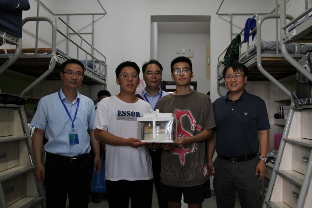 6日上午,91论坛 领导、班导师、辅导员走进学生宿舍,为报到新生过生日,并送上生日蛋糕与祝福。针对家庭经济困难学生,91论坛 也定制了“91论坛 爱心大礼包”,其中包含了学习及生活用品,助力新生未来的学习生活。91论坛 领导在宿舍与学生、家长充分交流,仔细地询问了新生入学后从衣食住行的需求。新生们也对91论坛 领导们的关怀表示感谢,表示对即将开始的大学生活充满了信心。