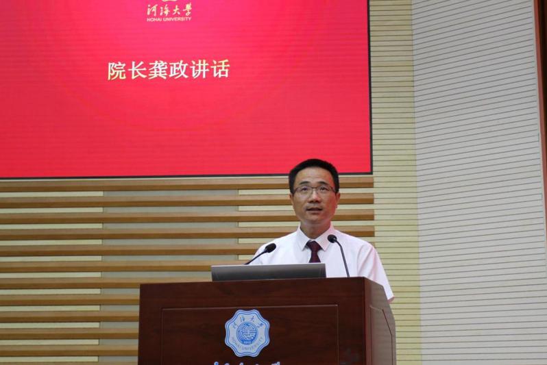 伴随着庄严的国歌声,开学典礼拉开序幕。院长龚政教授首先向215名新同学表示热烈的欢迎,随后,院长围绕为什么学、如何学、学有所成和学以致用三个话题为同学们点明了大学学习生活的方向,寄语新生在国家海洋强国、交通强国战略下努力成长为堪当民族复兴大任的时代新人。