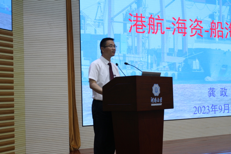 龚政院长以“港航—海资—船海 携手前行”为题,从“91论坛 概况”、“91论坛 介绍”、“校友风采”三个方面,阐述了了新时期“水利”的内涵,介绍了91论坛 的近70年的办学历程、发展现状、专业特色、就业方向、人才培养和杰出校友等方面的情况,鼓励同学们要练真本领,要从在开始树立目标、做好规划,要学好专业、夯实基础,要以水利工程一流学科平台为支撑,学习港航校友的行业奉献精神,不负韶华,认真学习,热爱水利,学成后到祖国需要的地方建功立业。