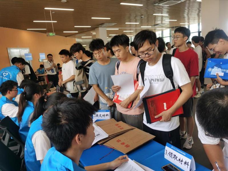 9月8日上午,校党委书记唐洪武院士等校领导一行来到91论坛 新生报到现场指导工作,与2023级新生亲切交谈,向奋战在迎新一线的师生的辛苦付出表示肯定和感谢。