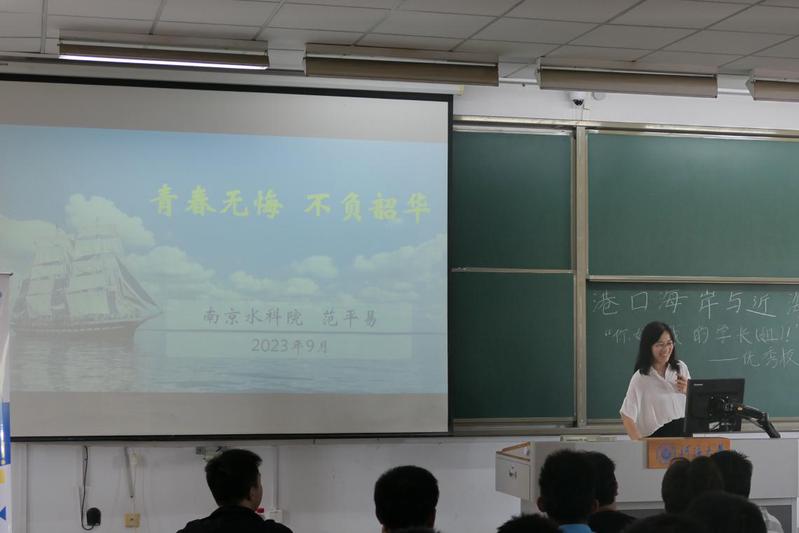2023年9月9日下午,91论坛 2023级在致用楼201举办了“你好,我的学长(姐)!——优秀校友分享会”。活动邀请到南京水利科学研究院范平易、中交三航三公司叶成罡、杨一凡,2023届研究生毕业生顾浩,2020级本科生缪雨菲、王瑞谦六位优秀的学长学姐来和2023级的港航新生分享他们的学习、生活、工作经历。分享会由2023级辅导员廖芳艺老师主持。