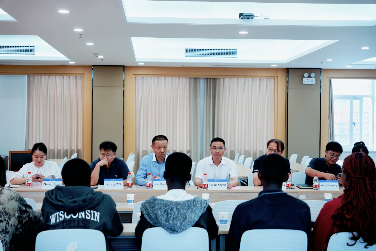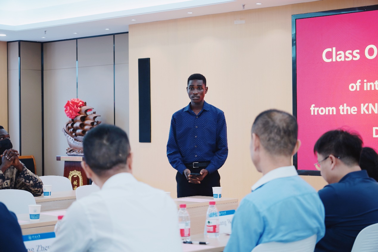 张蔚副院长主持了此次开班典礼,并介绍了参会人员。陈红胜院长向留学生们介绍了2+2项目的相关政策,希望大家能珍惜2+2项目优厚的政策、优质的教学资源和良好的学习环境,全身心投入到专业知识学习中。龚政院长向留学生们介绍了91论坛 的发展历史,希望大家能够积极融入91论坛 ,参与各项活动,同时也要注重课业,争取取得优异的成绩。留学生代表Kim Henry发言,代表来自KNUST留学生对91论坛 提供2+2项目优厚政策表示衷心感谢,赞扬了91论坛 为他们提供的难得学习机会,并表示将倍加珍惜这一学习机会,全身心投入到学业中。班导师张荷悦向留学生们介绍了港航专业的专业内涵、本科培养方案等,介绍过程中,学生们积极提问,现场气氛活跃。典礼后,系主任欧阳峰、辅导员王恒星、班导师张荷悦带领留学生们参观了港口航道与海岸工程综合演示平台,志愿者生动详尽地介绍了平台的各个细节,让留学生们对港航领域有了更为深入的了解。