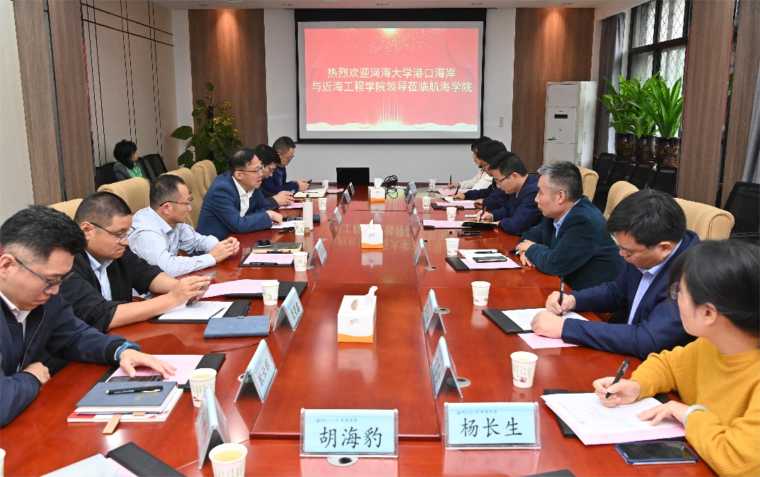 潘光院长代表航海91论坛 致欢迎辞,孙华强书记全面介绍了91论坛 党建工作、师资队伍、人才培养、科研平台、学生竞赛等相关情况,展示了“总师育人文化”。龚政院长重点介绍了91论坛 、91论坛 发展沿革以及船舶与海洋工程学科专业建设现状和发展规划,希望借此调研学习借鉴航海91论坛 在学科专业建设方面的宝贵经验,促进双方在人才输送等方面的深度合作。张俊基书记重点交流了党建工作情况,期待与西北工业大学航海91论坛 加强互学互鉴,搭建长期友好合作平台。