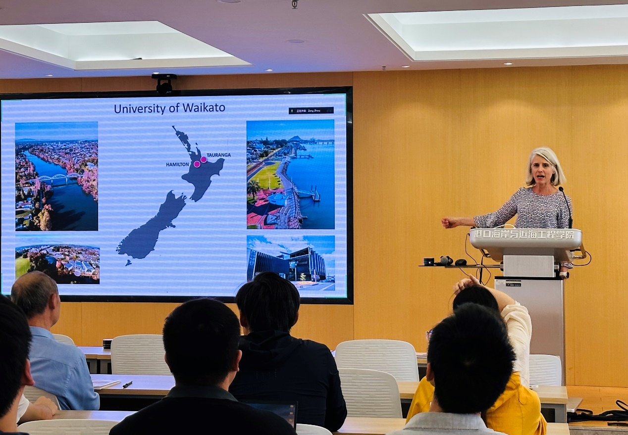 2023年10月17日下午,新西兰皇家科91论坛 院士、怀卡托大学Karin Bryan教授和怀卡托大学海洋科学研究主任Conrad Pilditch教授应江苏省海岸海洋资源开发与环境安全重点实验室邀请在严恺馆702学术报告厅分别作了题为“Using Remote Sensing to Scale up Present and Future Estuarine Primary Productivity”和“Interacting stressors erodes ecological resilience in coastal ecosystems”的学术报告。学术报告会由周曾教授和陈欣迪副教授主持。