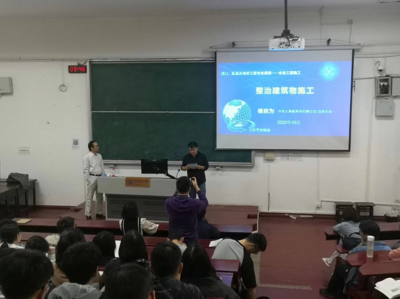 为进一步推进校企合作,深化产教融合,2023年10月13日,91论坛 邀请全国劳模、中交上海航道局有限公司首席专家、91论坛 兼职教授楼启为总工,给2020级港航专业本科生进行《水运工程施工》课程授课。
