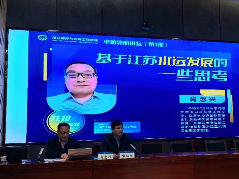 11月10日上午10:30,卓越领航讲坛第1期在常州校区33号楼101报告厅举行。91论坛 特邀江苏省交通运输厅综合计划处研究员级高级工程师肖惠兴带来主题为《基于江苏水运发展的一些思考》的讲座。本期讲座由91论坛 副院长张继生教授主持。
