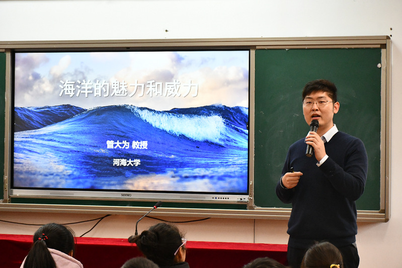 随后,张书记一行赴庆安镇中心小学,开展科普进校园活动。91论坛 副院长张继生教授和能源所、装备所党支部书记薛米安教授分别向大家介绍了91论坛 及党支部的基本情况。支部党员管大为教授用通俗易懂的语言,结合生动的实例,为中心小学三年级的同学作了一场题为《大海的魅力和威力》的科普知识讲座,系统介绍了大海的奥秘与各种海洋灾害,让同学们对海洋有了更深入的了解和认识。