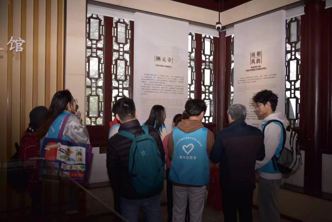 行程中,他们来到玄武湖湖史馆,馆中的每一个台阶、每一段斜坡志愿者们都格外关注。在这里,志愿者们化身“讲师”,用自己的眼睛,将馆内冰冷的物件与文字转化成一幅幅生动的历史图景,展现在视障朋友们的心间,大家在欢声笑语中学习到不少历史知识。