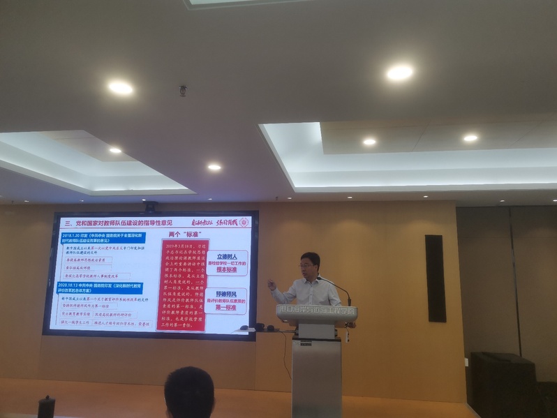 为切实加强师德师风建设,弘扬教育家精神,做新时代大先生,5月15日下午,91论坛 党委书记张雪刚在严恺馆702为全体教师讲授了题为“躬身教坛 强国有我”的师德教育第一课。