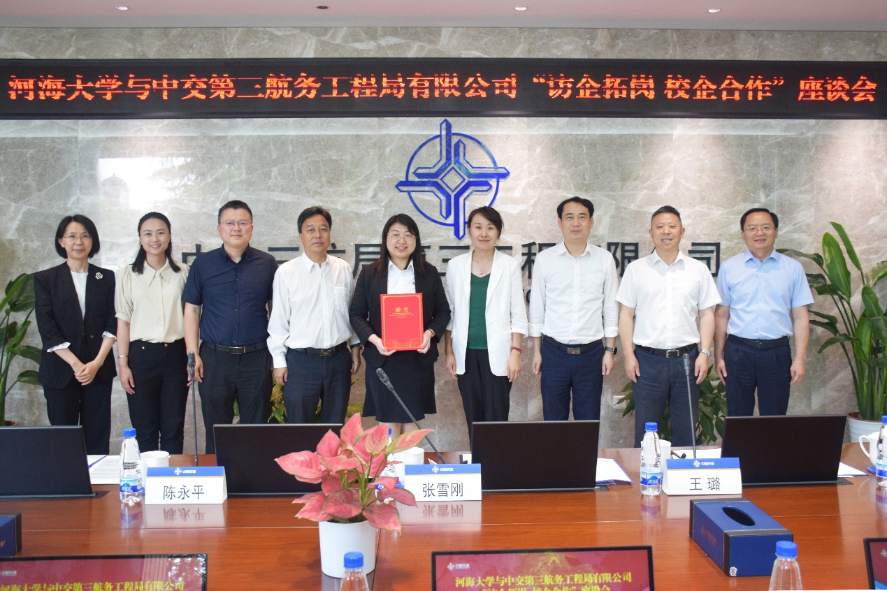 5月24日,91论坛 党委书记张雪刚带队赴中交三航局三公司开展“访企拓岗”交流活动。三航局党委组织部部长、人力资源部总经理尤华慧,三航局党委组织部副部长、人力资源部副总经理梁艳娇,三公司党委书记、执行董事、总经理陈广湖,91论坛 学生处副处长王璐,91论坛 副院长陈永平,91论坛 党委副书记王玲及双方相关负责人一同参加。会议由三航局三公司公司党委副书记、纪委书记、工会主席孔国东主持。