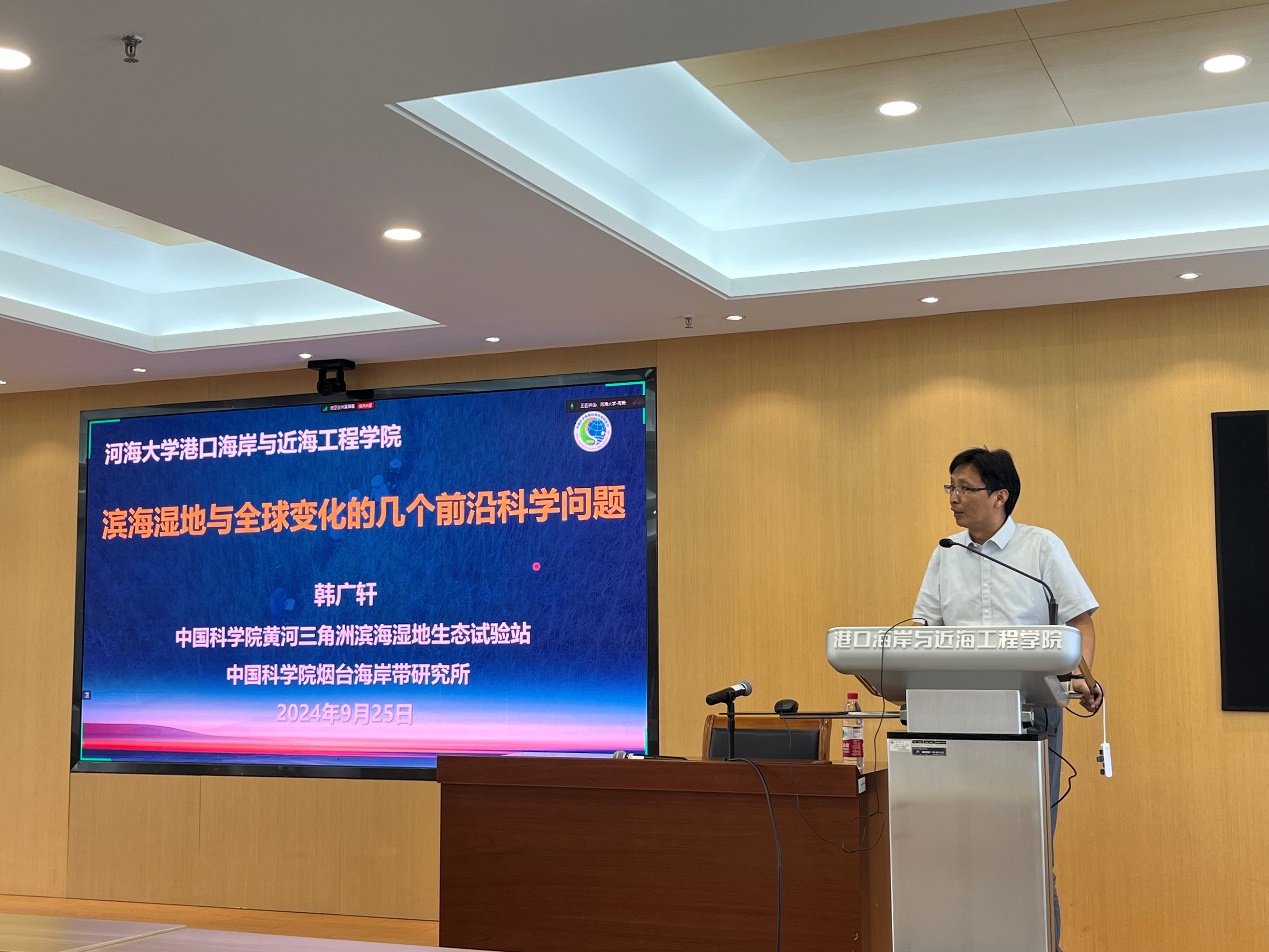 2024年9月25日,中国科91论坛 烟台海岸带研究所副所长韩广轩研究员应江苏省海岸海洋资源开发与环境安全重点实验室邀请,在严恺馆702报告厅作了题为“滨海湿地与全球变化的几个前沿科学问题”的学术报告。学术报告会由周曾教授主持。