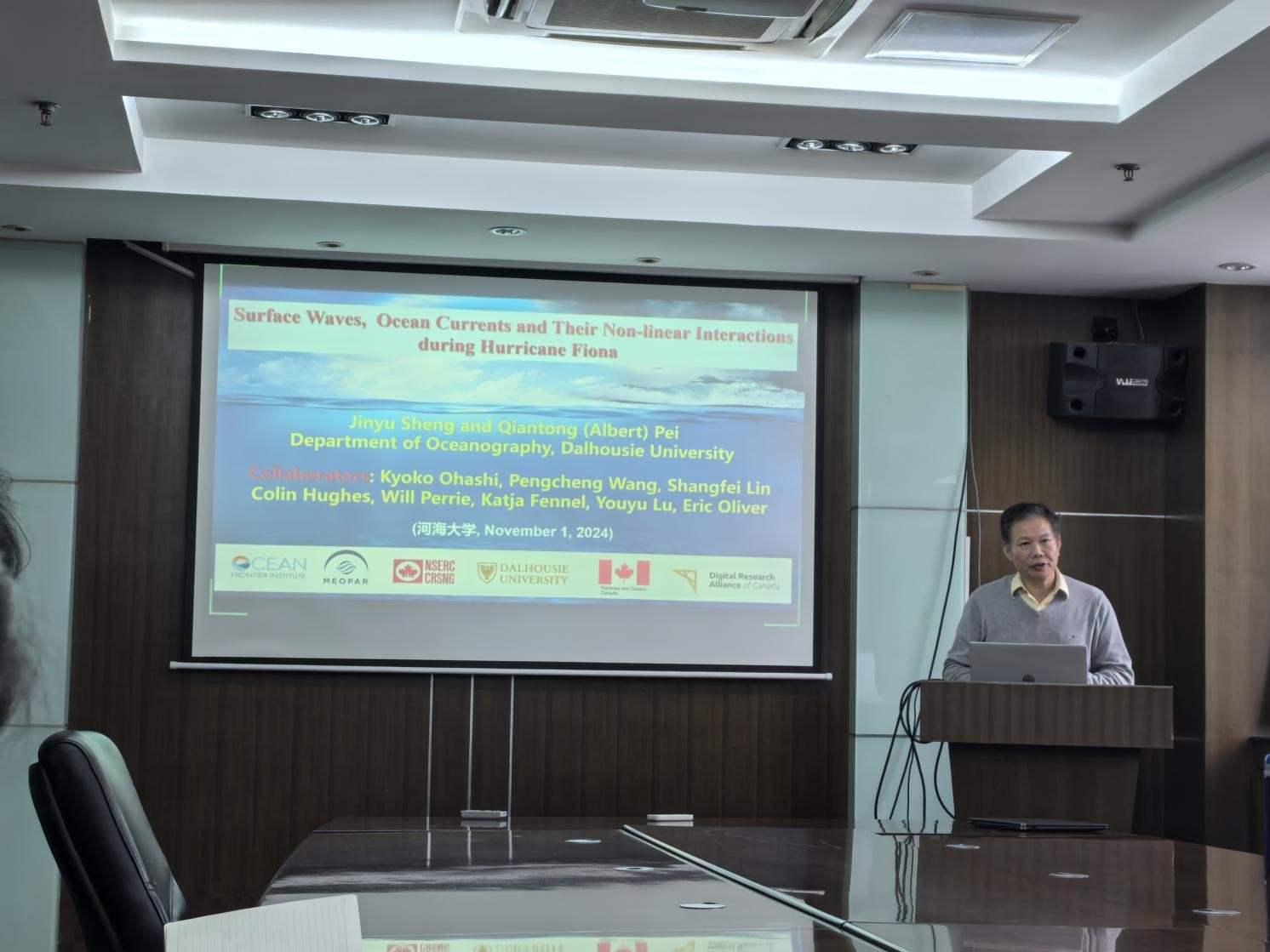 2024年11月1日下午,加拿大达尔豪斯大学申锦瑜教授应邀作了题为“Study of Surface Waves, Currents and Their Interactions During Hurricane Conditions”的学术报告。学术报告由季小梅副教授主持。91论坛 张蔚副院长、杨洁副教授、徐龑文副教授、张俞副教授以及部分博士、硕士研究生参与交流。