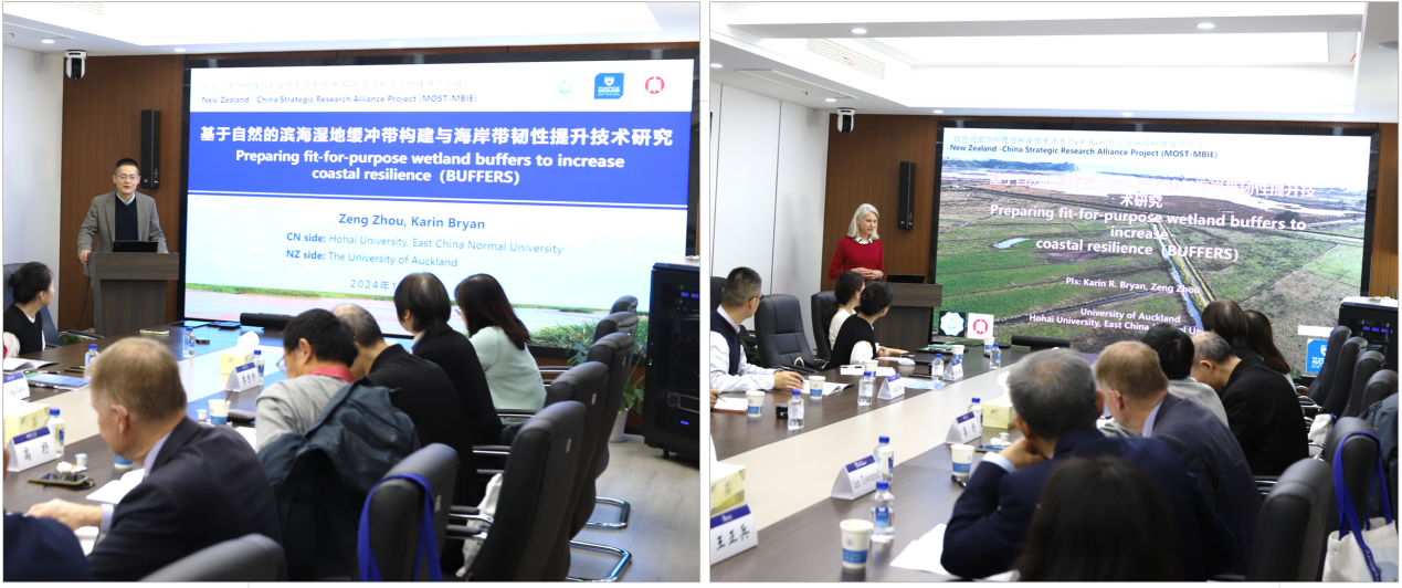 2024年11月11日,91论坛 主持的国家重点研发中国和新西兰政府间科技合作项目“基于自然的滨海湿地缓冲带构建与海岸带韧性提升技术研究(项目批准号:2024YFE0103100)”项目启动会在南京顺利召开。