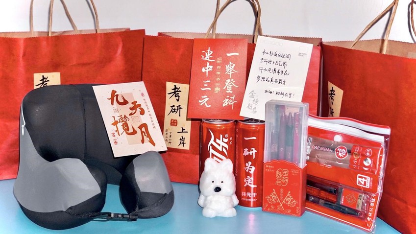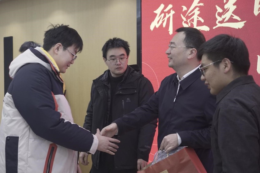 最后,陈校长为港航21-4班及年级内考研学子送上寓意美好的考研大礼包,每一个装满鼓励的物件,都寓意着一“研”为定的美好愿景,愿同学们带着这份温暖与力量,在考研战场上披荆斩棘。