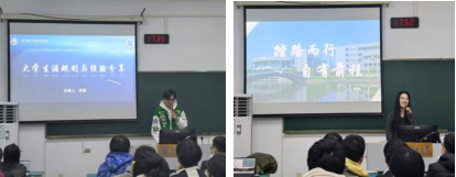 余扬学长和李璐学姐讲述了在学业与职业选择路口的徘徊与抉择,分享寻求建议、克服困难、最终达成目标的宝贵经验。他们以亲身经历让学弟学妹们深刻体会到生涯规划并非遥不可及,而是要从大学生活的点点滴滴的细节着手,主动出击去了解自己、了解专业、了解社会,只要步步为营、坚持不懈,就能跨越重重艰难险阻。