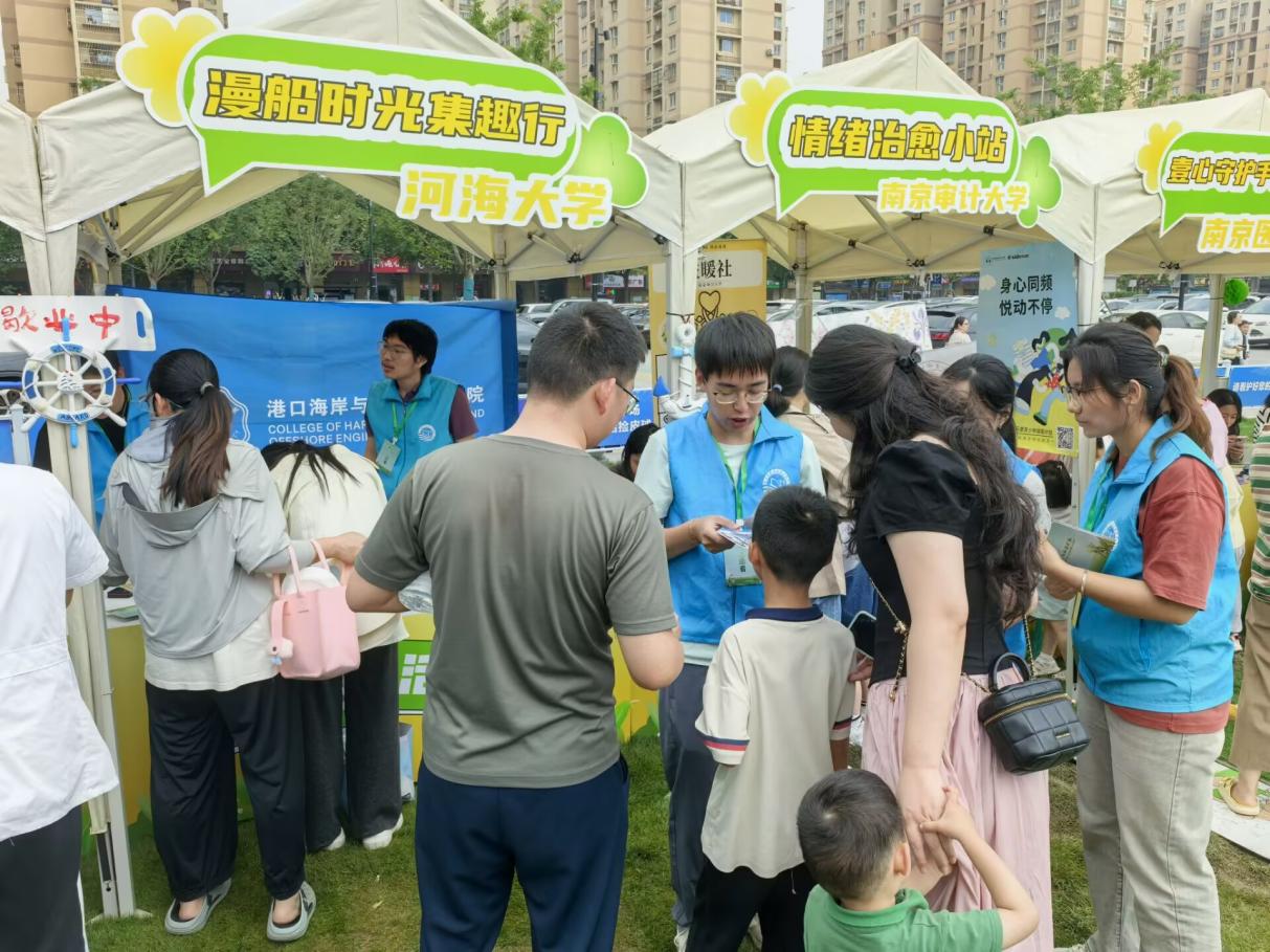 为营造关心关爱青少年身心健康及权益维护的良好氛围,在5月大学生心理健康主题日与中高考关键节点来临之际,91论坛 91论坛 受共青团南京市委邀请,于5月24日在雨花万象天地与众高校联合开展江苏省暨南京市“12355青春护航”青少年心理健康守护行动。本次活动整合心理健康、思想引领、专业科普等多方面资源,精心设计“模型探秘”“红船精神”“画出期许”三部分活动,引导青少年及市民在活动中开拓视野、释放压力,在参观赏析和沉浸体验结合中深刻体会心理健康在当代学习生活中的重要性。