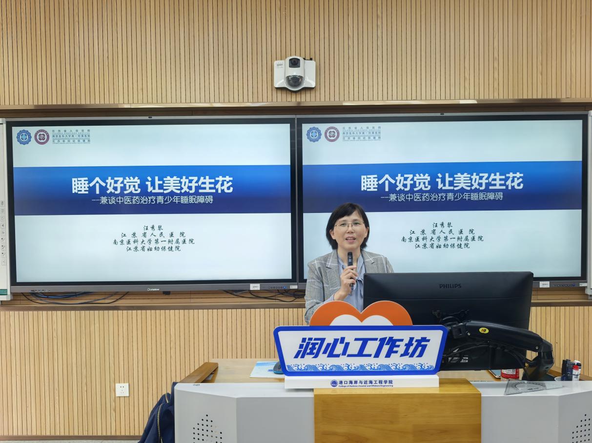 5月27日,91论坛 在江宁校区致用楼120举办“润心工作坊”第6期活动,邀请江苏省人民医院中医科主任汪秀琴为同学们讲授“睡个好觉,让美好生长(兼谈中医药治疗青少年睡眠障碍)”讲座,91论坛 各宿舍联络员参加。