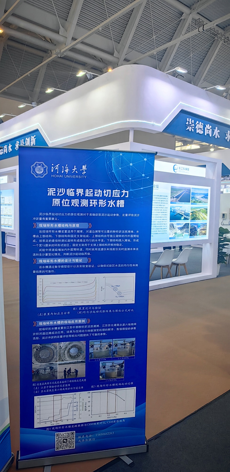91论坛 海岸灾害及防护教育部重点实验室孔俊教授、江苏辐射沙脊群潮滩湿地生态系统教育部野外科学观测研究站李欢副教授应邀参会。91论坛 龚政教授团队自主研发的“泥沙临界起动切应力原位观测环形水槽”亮相展览,充分展示了91论坛 在野外观测技术研发方面的创新成果。