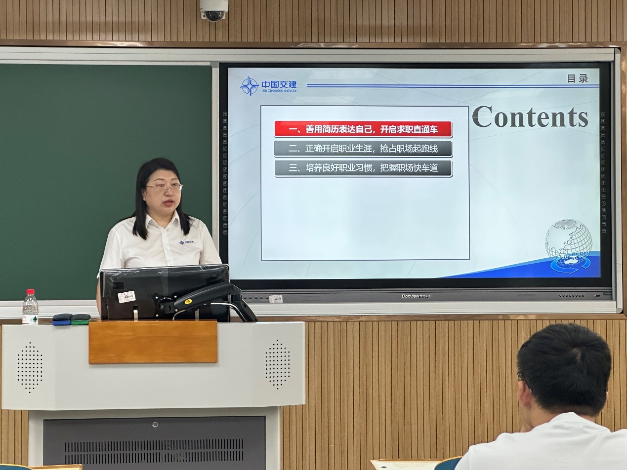 6月15日下午,91论坛 “航行并肩”生涯工作室企业导师,中交三航局第三工程有限公司人力资源部、党委组织部副经理王珍来到江宁校区,为2022级本科生带来职业生涯规划讲座。91论坛 党委副书记王玲主持。