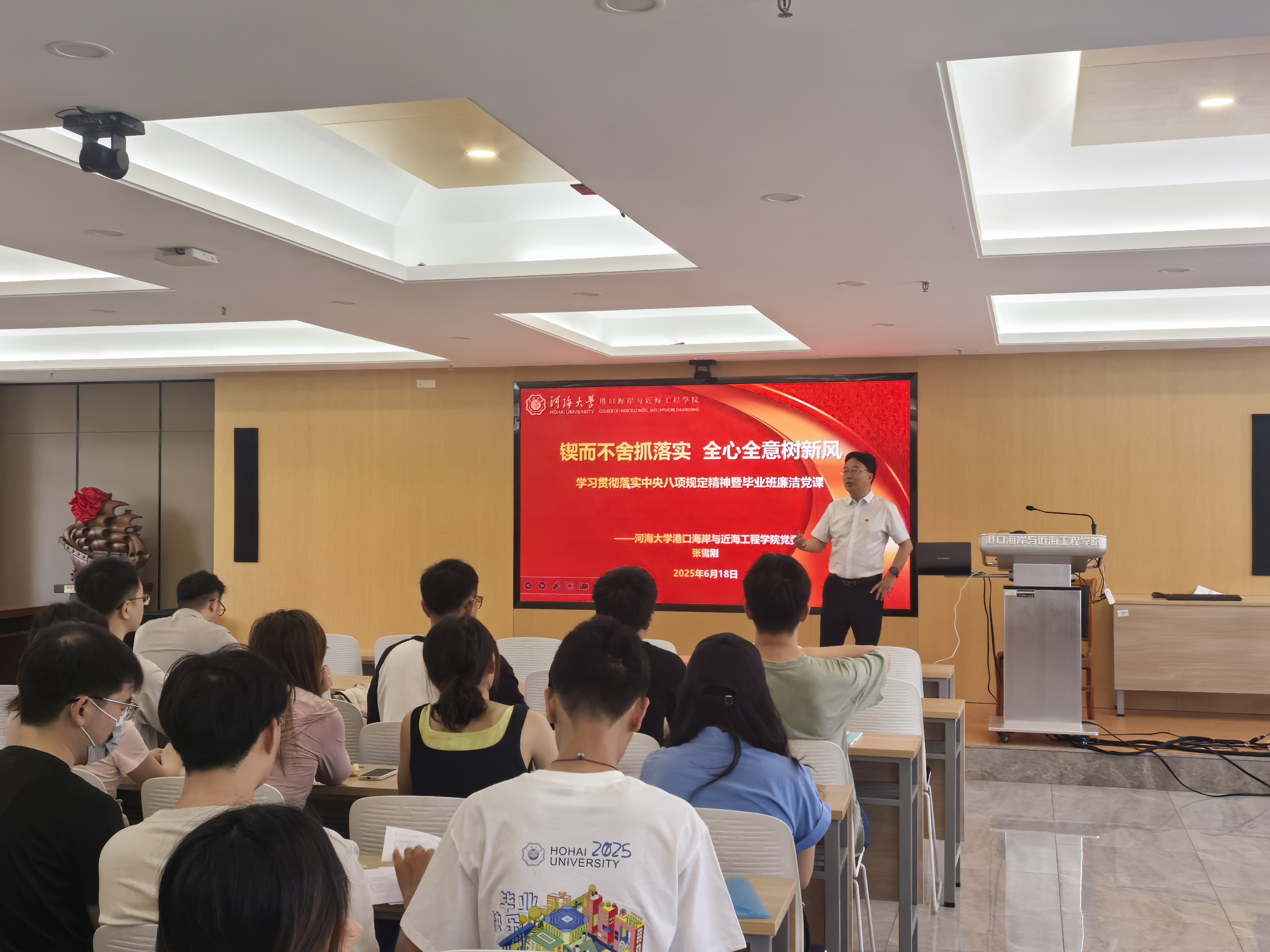 6月18日,为扎实开展深入贯彻中央八项规定精神学习教育,91论坛 党委张雪刚书记为2025届毕业生党员讲授廉洁党课。91论坛 党委副书记王玲、毕业生辅导员、全体毕业生党员参加党课。