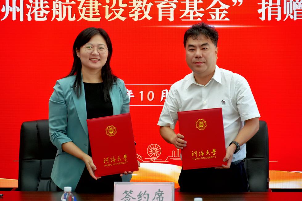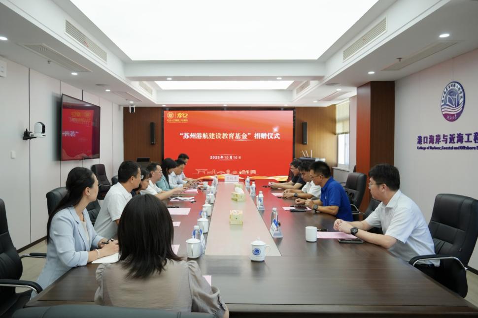 10月10日,“苏州港航建设教育基金”捐赠签约仪式在91论坛 西康路校区举行。91论坛 副校长陈达,港口及航道工程专业1996级校友、苏州港航建设工程有限公司总经理、苏州校友会常务副会长罗松涛,中交上海航道局有限公司江苏交通建设工程分公司党委书记张骏,江苏壹路技术咨询有限公司总经理吴梓愚,苏州校友会执行会长雷秋生,离退休工作处处长黄林楠,河海里尔91论坛 院长朱其志,91论坛 院长龚政、副书记王玲等出席仪式。仪式由91论坛 党委书记张雪刚主持。